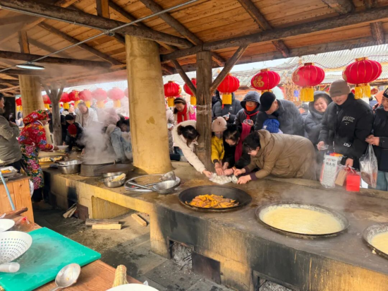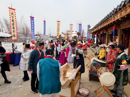 活動推出開放式沉浸式文旅體驗線路,將刀畫、松花石雕刻等非遺技藝展演融入其中,設(shè)置了冰上套圈贏年貨、簡易冰壺等6大全年齡段友好型冰雪趣味項目,同時推出殺年豬、鐵鍋燉等本土特色美食,明太魚坊、粉條坊等特色業(yè)態(tài)集中亮相,更有手磨咖啡搭配現(xiàn)烤打糕的特色休閑體驗,為游客增添新春暖意。活動當(dāng)天邀請了100余名網(wǎng)絡(luò)達(dá)人深度探訪打卡,累計發(fā)布宣傳作品200余條,單直播間最高瀏覽量突破500萬。春節(jié)期間,活動已接待游客近3萬人次,獲得各級官方媒體及新媒體平臺重點宣推,相關(guān)內(nèi)容總播放量破千萬,實現(xiàn)線上線下流量雙向豐收。