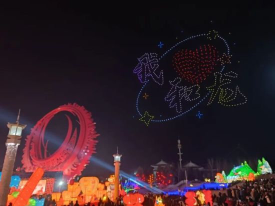 夜幕降臨,活動迎來高潮時刻!耙箍砧 龍馬精神”無人機表演震撼亮相,數(shù)百架無人機劃破夜空,依次排布出“我愛和龍”“紅太陽照邊疆”等極具和龍?zhí)厣膱D案,科技的靈動與浪漫的氛圍完美交融,引得現(xiàn)場觀眾紛紛駐足拍攝、贊嘆不已。