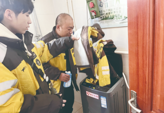 1月19日一早,記者走進(jìn)服務(wù)驛站時(shí),已有幾位騎手在此休息。干凈整潔的床鋪、沙發(fā)、桌椅,晾衣架、飲水機(jī)、微波爐、礦泉水、應(yīng)急藥品等一應(yīng)俱全。“這個服務(wù)驛站特別好,旁邊就是美團(tuán)的工作站點(diǎn),每天開完早會或者不忙時(shí),我們都會來這休息,吃個飯、喝口水,告別風(fēng)餐露宿。衣服臟了還可以用洗衣機(jī)洗,特別省心,就像家一樣!蓖赓u員郭蕊說。