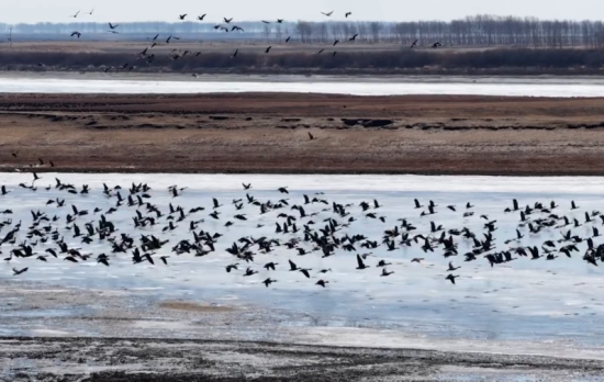 吉林長春伊通河畔春來早 近千只水鳥舞翩躚