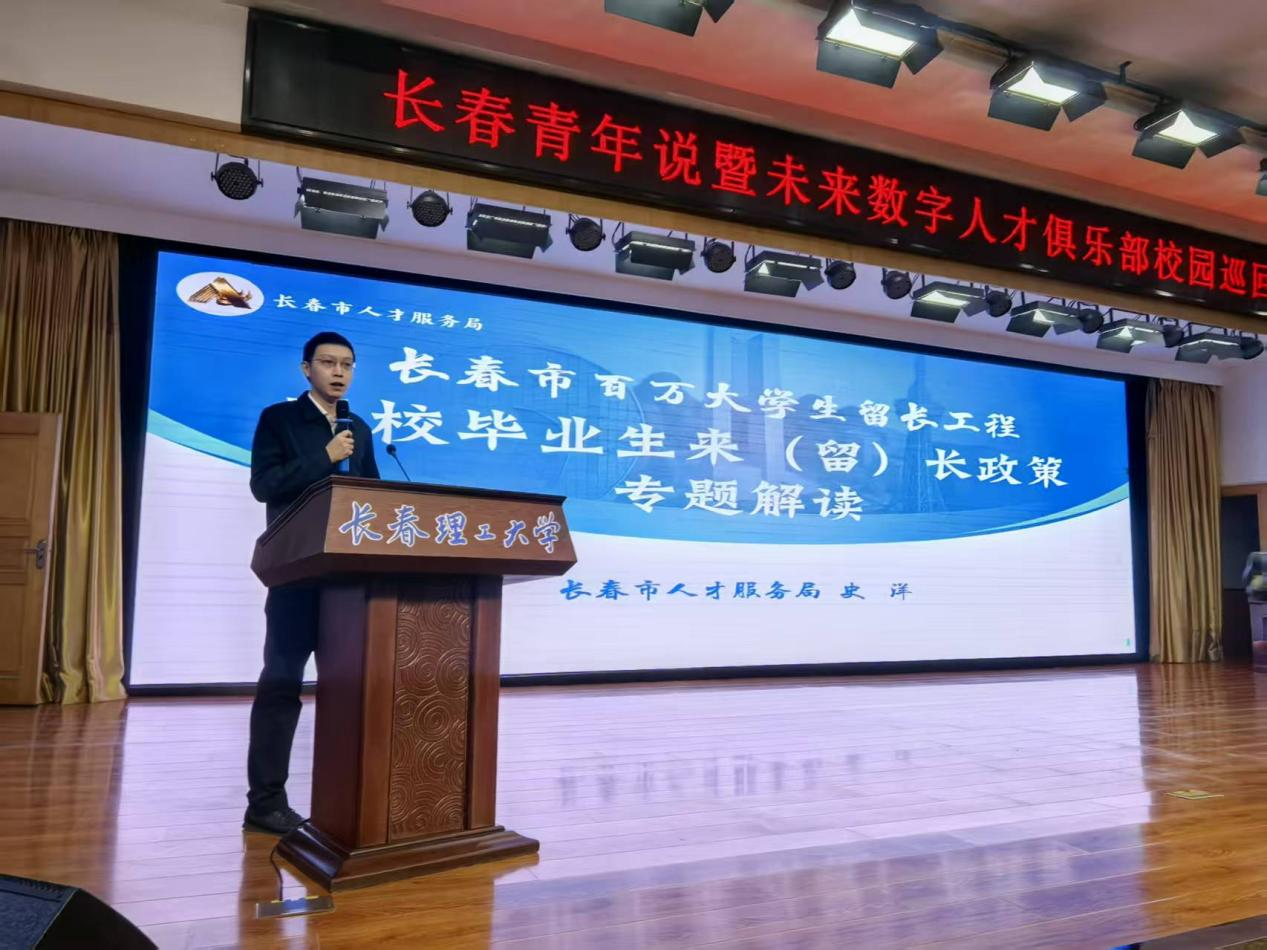 為積極推進(jìn)青年發(fā)展型城市建設(shè),服務(wù)長(zhǎng)春市“長(zhǎng)聚學(xué)子·春城暖才”人才工作部署,11月12日,由長(zhǎng)春市政務(wù)服務(wù)和數(shù)字化建設(shè)管理局、共青團(tuán)長(zhǎng)春市委主辦,長(zhǎng)春市數(shù)字經(jīng)濟(jì)協(xié)會(huì)、長(zhǎng)春市人才服務(wù)局、長(zhǎng)春理工大學(xué)承辦的“長(zhǎng)聚學(xué)子·春城暖才”長(zhǎng)春青年說(shuō)暨未來(lái)數(shù)字人才俱樂部校園巡回宣講活動(dòng)在長(zhǎng)春理工大學(xué)正式啟動(dòng)。