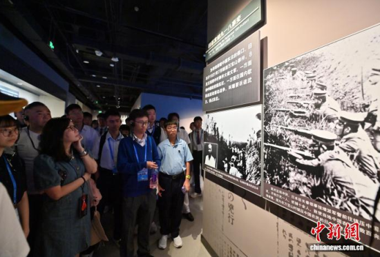 8月11日,吉林長(zhǎng)春,香港青年參觀東北淪陷史陳列館。為紀(jì)念中國(guó)人民抗日戰(zhàn)爭(zhēng)暨世界反法西斯戰(zhàn)爭(zhēng)勝利80周年,數(shù)十名香港青年走進(jìn)東北淪陷史陳列館,通過館內(nèi)大量珍貴文物和歷史資料,深入了解東北人民在抗戰(zhàn)時(shí)期所經(jīng)歷的苦難歲月以及他們英勇抗?fàn)幍氖论E。中新社記者 張瑤 攝