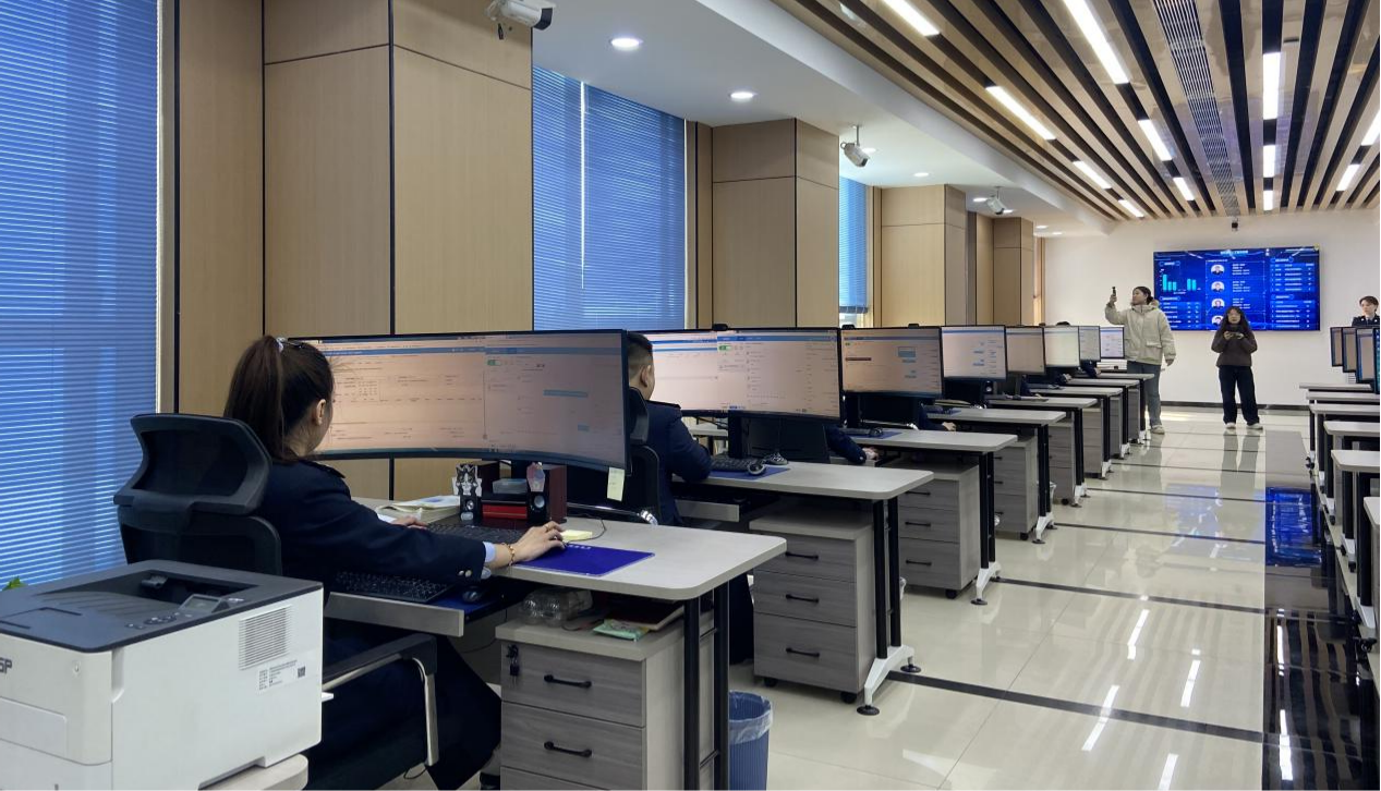 如果說一樓大廳是服務(wù)的“前臺”,那么二樓稅費服務(wù)集約處理中心則是支撐這一切的“大腦”。巨大的電子顯示屏上實時滾動著各項數(shù)據(jù):稅款繳納、納稅申報的頻次和占比,以及每個征納互動人工坐席的會話數(shù)量、服務(wù)時長。