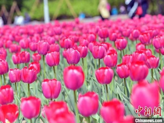40余萬(wàn)株郁金香迎來(lái)盛花期。 40余萬(wàn)株郁金香迎來(lái)盛花期,艷麗奪目。 40余萬(wàn)株郁金香迎來(lái)盛花期,艷麗奪目。 市民在公園賞花。 市民在公園賞花拍照。