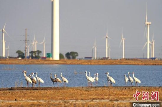 立夏季節(jié)在莫莫格濕地中停歇的白鶴種群!∨岁申拧z