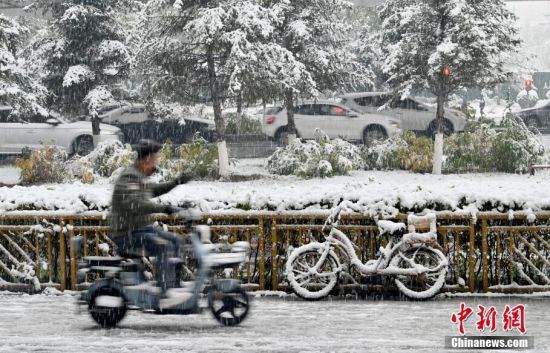 11月1日,吉林長春降下今年入秋以來的第一場(chǎng)雪,整座城市披上銀裝。中新社記者 張瑤 攝