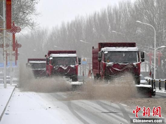 清雪車輛在街頭清雪。