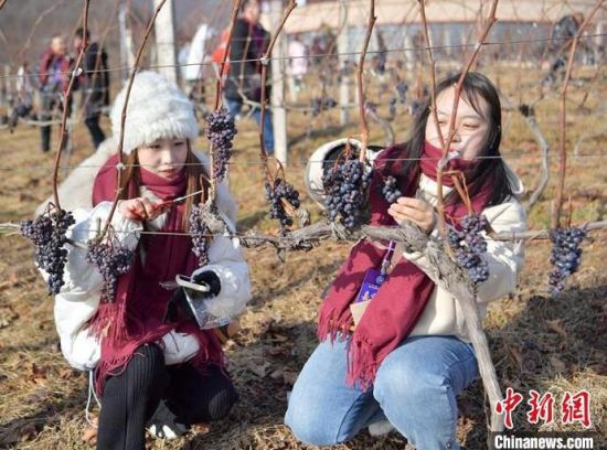 12月9日,吉林集安鴨綠江河谷,游客采摘冰葡萄。集安市所在的鴨綠江河谷與法國著名葡萄酒產(chǎn)地羅納河谷處于同一緯度,同屬世界葡萄酒黃金生產(chǎn)帶,當(dāng)?shù)厮a(chǎn)的冰葡萄是釀制冰酒的主要原料。目前,鴨綠江河谷冰葡萄已經(jīng)進(jìn)入最佳采摘時期。(完)