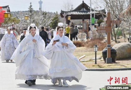 4月7日,在吉林省延邊州延吉市的中國(guó)朝鮮族民俗園內(nèi),游客身著朝鮮族服飾拍照。延邊是中國(guó)唯一的朝鮮族自治州和最大的朝鮮族聚居地,近年來延邊旅游持續(xù)火爆,朝鮮族服飾旅拍也成為最受歡迎的旅游項(xiàng)目之一。