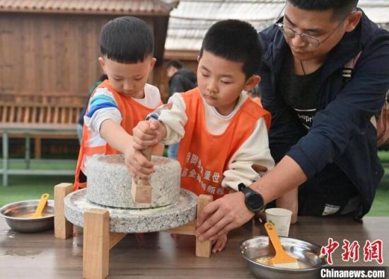 近來,鄉(xiāng)村農(nóng)事研學(xué)活動(dòng)在長春頗受歡迎。4月27日,在長春市陳家店村,萌娃們紛紛化身“小農(nóng)人”,通過磨豆?jié){、采摘水果、參觀勞作工具等活動(dòng)體驗(yàn)農(nóng)事樂趣,親近自然。