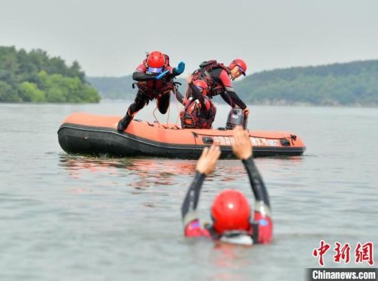 6月21日,吉林長春,消防救援人員正在進行水域救援翻舟自救科目訓(xùn)練。目前,吉林省已進入汛期,吉林省森林消防總隊特勤大隊緊貼實戰(zhàn)水域救援任務(wù),開展水域救援訓(xùn)練。消防救援人員重點對橡皮艇操控、操舟繞標、翻船自救、O型救援等內(nèi)容開展訓(xùn)練,全面做好防汛搶險等綜合性救援任務(wù)準備。(完)