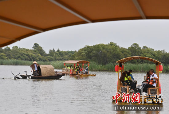 吉林長春:游客泛舟賞荷體驗(yàn)“清涼一夏”