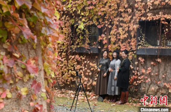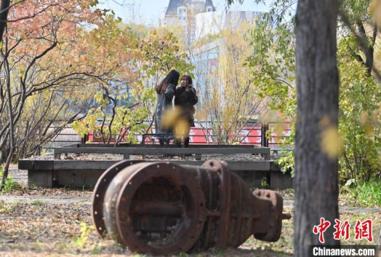10月17日,在長(zhǎng)春水文化生態(tài)園,游客在拍照留念。近年來(lái),隨著城市發(fā)展,長(zhǎng)春很多老工廠陸續(xù)遷往新址,閑置的老廠房則被改建成具有紀(jì)念意義的工業(yè)遺址公園。長(zhǎng)春水文化生態(tài)園原為長(zhǎng)春凈水廠,該廠遺留的設(shè)施、廠房與植物組成獨(dú)特的秋景,吸引眾多游人參觀。中新社記者 張瑤 攝