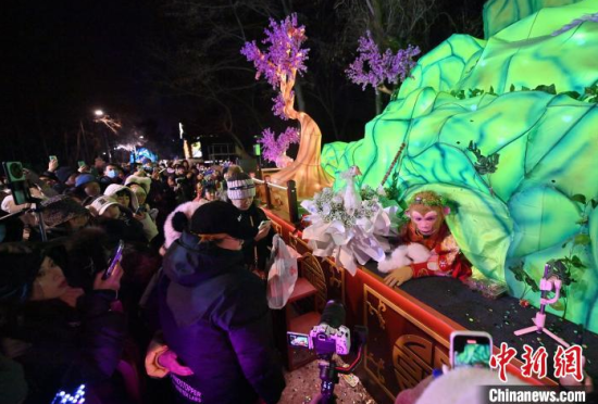 12月5日,在長(zhǎng)春市動(dòng)植物公園,“孫悟空”在與游客互動(dòng)。當(dāng)天,該園“西游記主題樂園”重新開放,吸引全國(guó)各地游客"沉浸式”體驗(yàn)中國(guó)傳統(tǒng)文化。 中新社記者 張瑤 攝