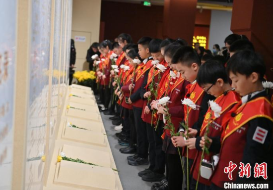 12月13日,在位于吉林長春的東北淪陷史陳列館,民眾在向英烈名錄獻花。當(dāng)天,偽滿皇宮博物院暨東北淪陷史陳列館聯(lián)合社會各界人士,共同舉辦“千秋忠烈 百世遺芳”南京大屠殺死難者國家公祭日悼念活動,沉痛悼念南京大屠殺死難同胞以及在抗日戰(zhàn)爭中獻出生命的革命英烈。中新社記者 張瑤 攝
