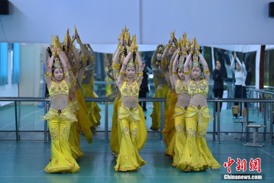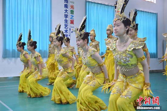 4月22日,在長春大學(xué)特殊教育學(xué)院,學(xué)生們在排練《千手觀音》。這所學(xué)院擁有一支由29名聽障學(xué)生組成的舞蹈團(tuán)隊(duì)。他們因?qū)ξ璧傅臒釔鄱奂谝黄,在無聲的世界中舞出他們精彩的人生篇章。中新社記者 張瑤/攝