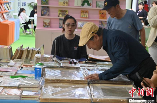 5月16日,吉林長春,市民在第二屆東北圖書交易博覽會(huì)上選購舊書。本屆東北書博會(huì)首次設(shè)立“舊書新知”(東北專場),匯聚了近千種古籍舊書、名家墨跡手稿、特裝書等,吸引不少市民關(guān)注選購。中新社記者 張瑤 攝