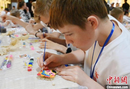 6月14日,吉林長春,俄羅斯青少年在展示京劇臉譜。當(dāng)天,“感知吉林·青春同行”2025中俄青少年文化交流系列活動(dòng)在長春啟動(dòng)。近 200 名中俄青少年參與京劇臉譜繪畫、制作魚皮畫等活動(dòng),感受中國文化科技魅力。中新社記者 張瑤 攝