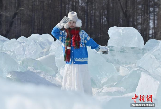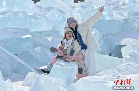 2月9日,在長(zhǎng)春凈月潭國(guó)家森林公園內(nèi),由水庫(kù)天然冰塊堆砌而成的“藍(lán)冰”景觀,吸引市民打卡拍照。“藍(lán)冰”是指致密堅(jiān)硬的冰,因冰內(nèi)部空氣被擠掉而變得晶瑩透徹,這時(shí)陽(yáng)光中波長(zhǎng)較短的藍(lán)光被致密堅(jiān)厚的冰層散射,冰塊便呈現(xiàn)出水晶般美麗的藍(lán)色。中新社記者 張瑤 攝