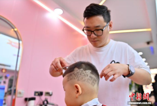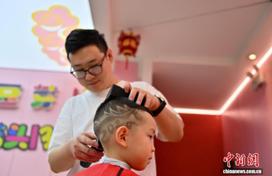 2月13日,吉林長(zhǎng)春,小朋友在剪發(fā)。馬年春節(jié)臨近,不少家長(zhǎng)帶著孩子剪發(fā),理發(fā)師也為孩子們特別設(shè)計(jì)了各式有趣的造型。中新社記者 張瑤 攝