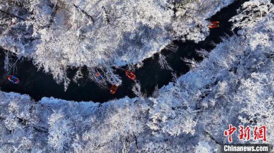 游客在冰天雪地里進行漂流之旅。白山市新聞傳媒中心供圖