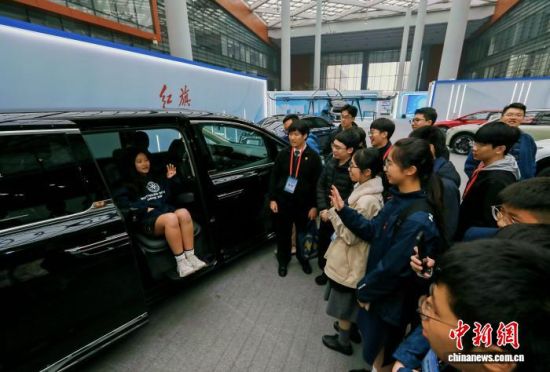 4月3日,吉林長春,香港中學(xué)生在中國一汽體驗紅旗汽車。韓俊海 攝